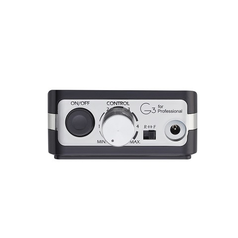 G3は充電タイプのネイルマシン。重量わずか250gで持ち運びに便利です。高性能リチウムイオンポリマー電池使用で、高寿命。2時間充電で約5時間程度使用可能。電池残量及び、充電状況がLEDで表示されます。