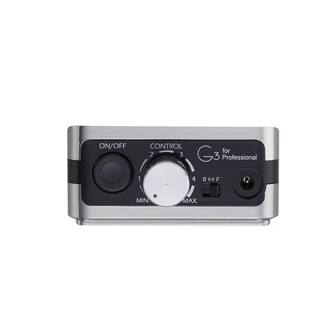G3は充電タイプのネイルマシン。重量わずか250gで持ち運びに便利です。高性能リチウムイオンポリマー電池使用で、高寿命。2時間充電で約5時間程度使用可能。電池残量及び、充電状況がLEDで表示されます。